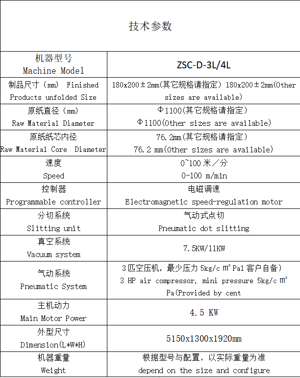ZSC-D-3L/4L型抽式麵巾紙(zhǐ)機是將分切後的(de)原紙經刀(dāo)輥剪切,交互(hù)折(shé)疊成鏈式的長方形麵巾紙。本機(jī)采用真空吸附、自動分疊計數功能(néng),具有速度高、折疊整(zhěng)齊(qí)、操作簡便等優點。